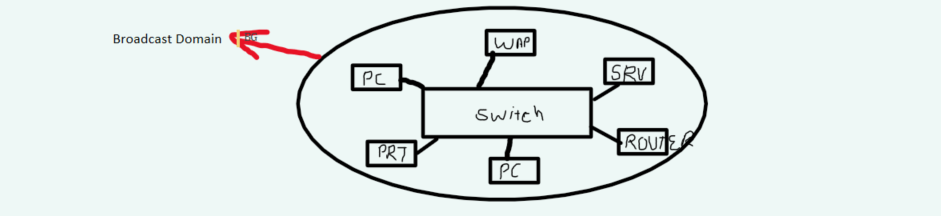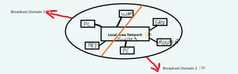 A broadcast domain consist of group of network devices, when one network device sends a broadcast frame, all other devices get a copy of the same frame. To separate devices in two or more broadcast domains, VLANs are required.